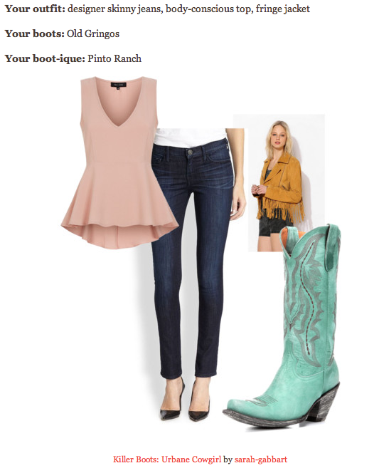 With the Rodeo on the horizon I’ve been looking for the perfect pairing. Whether your boots are some crazy vintage gems or more cocktail worthy like Old Gringos I love getting in tot he Rodeo spirit. I saw this get-up on HoutoniaMag.com and fell in love!!